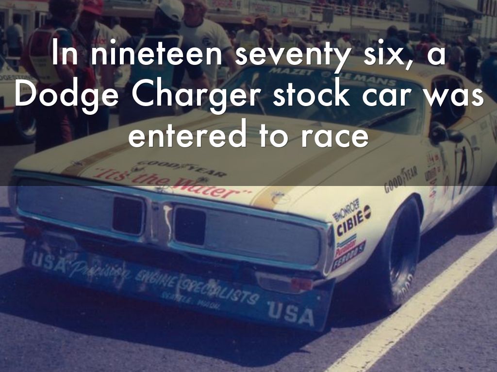 In nineteen seventy six, a Dodge Charger stock car was entered to race