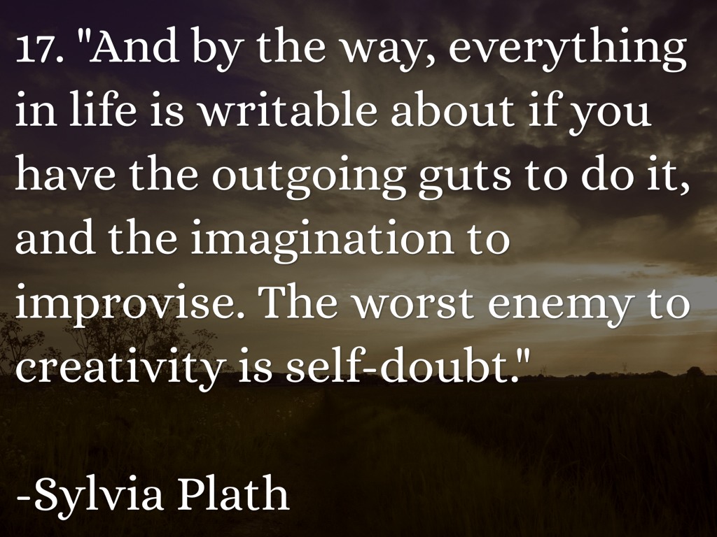 17. "And by the way, everything in life is writable about if you have the outgoing guts to do it, and the imagination to improvise. The worst enemy to creativity is self-doubt."