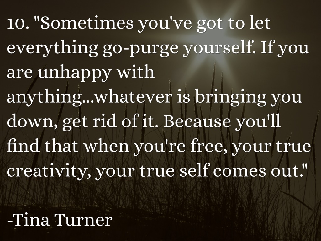 10. "Sometimes you've got to let everything go-purge yourself. If you are unhappy with anything...whatever is bringing you down, get rid of it. Because you'll find that when you're free, your true creativity, your true self comes out."