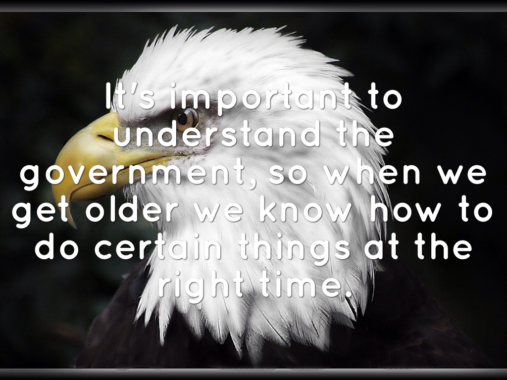 It's important to understand the government, so when we get older we know how to do certain things at the right time.
