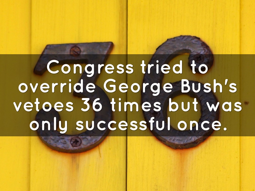 Congress tried to override George Bush's vetoes 36 times but was only successful once.