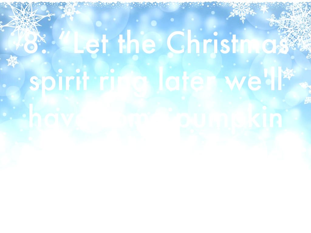 8. “Let the Christmas spirit ring later we'll have some pumpkin pie & we'll do some caroling”