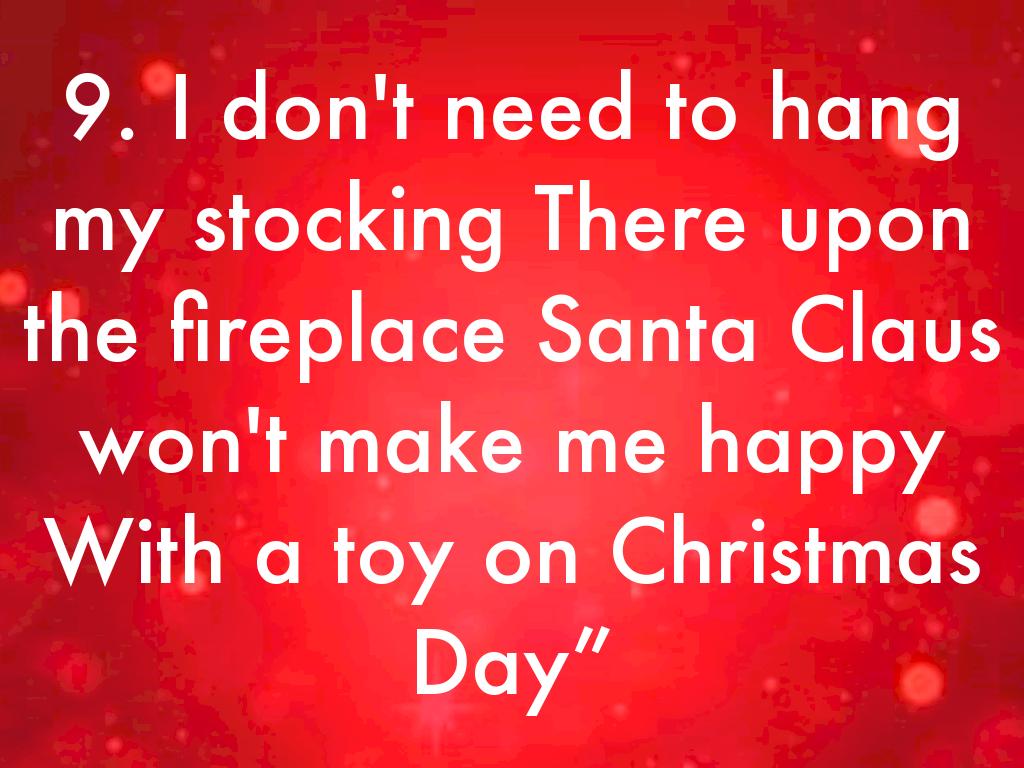 9. I don't need to hang my stocking There upon the fireplace Santa Claus won't make me happy With a toy on Christmas Day”