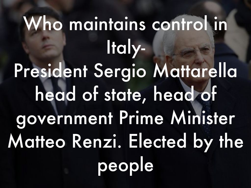 President Sergio Mattarella head of state, head of government Prime Minister Matteo Renzi. Elected by the people