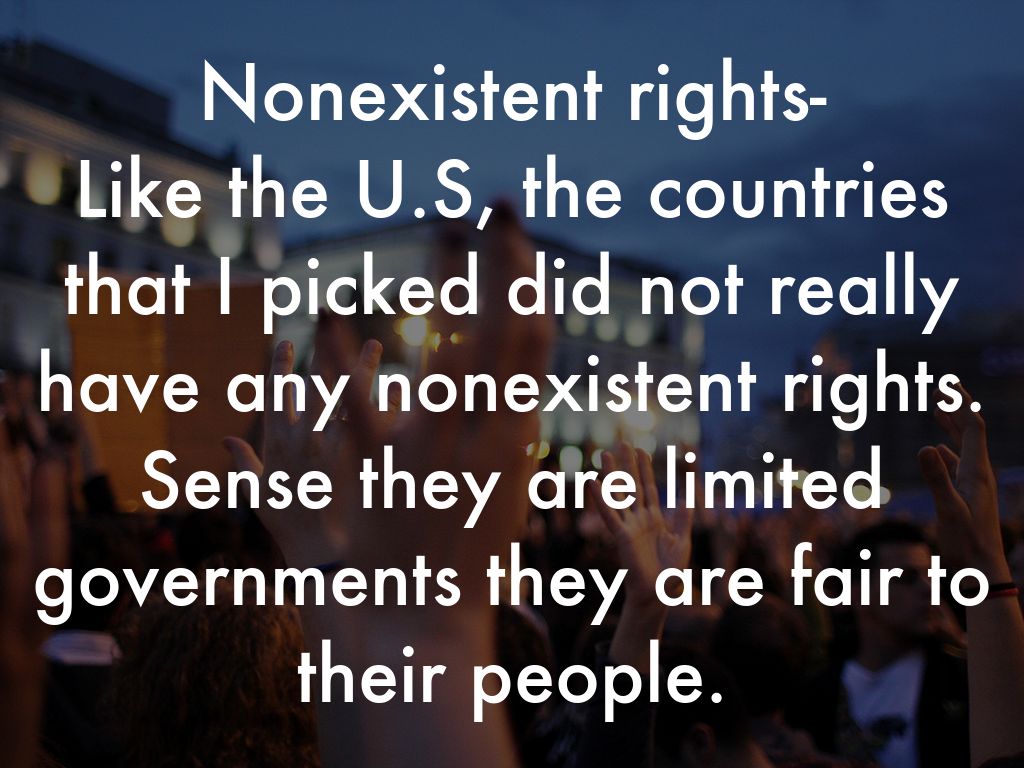 Like the U.S, the countries that I picked did not really have any nonexistent rights. Sense they are limited governments they are fair to their people.