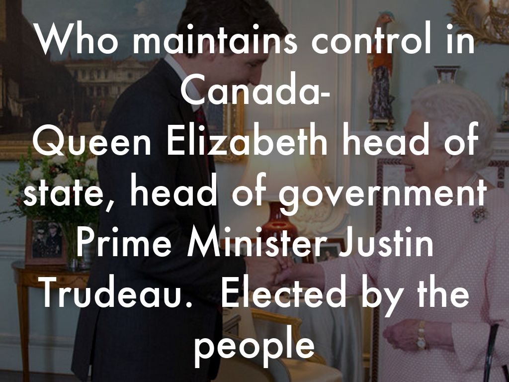 Queen Elizabeth head of state, head of government Prime Minister Justin Trudeau. Elected by the people