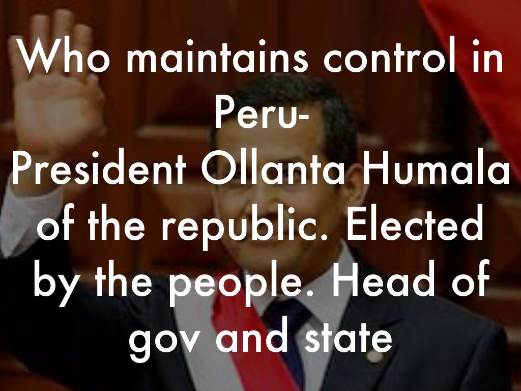 President Ollanta Humala of the republic. Elected by the people. Head of gov and state