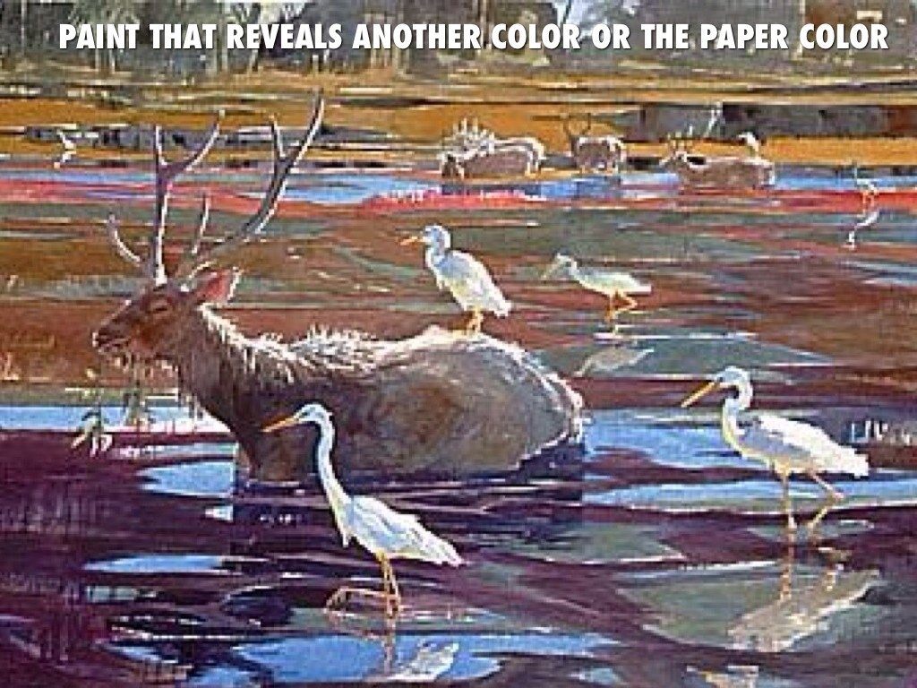 Paint that reveals another color or the paper color