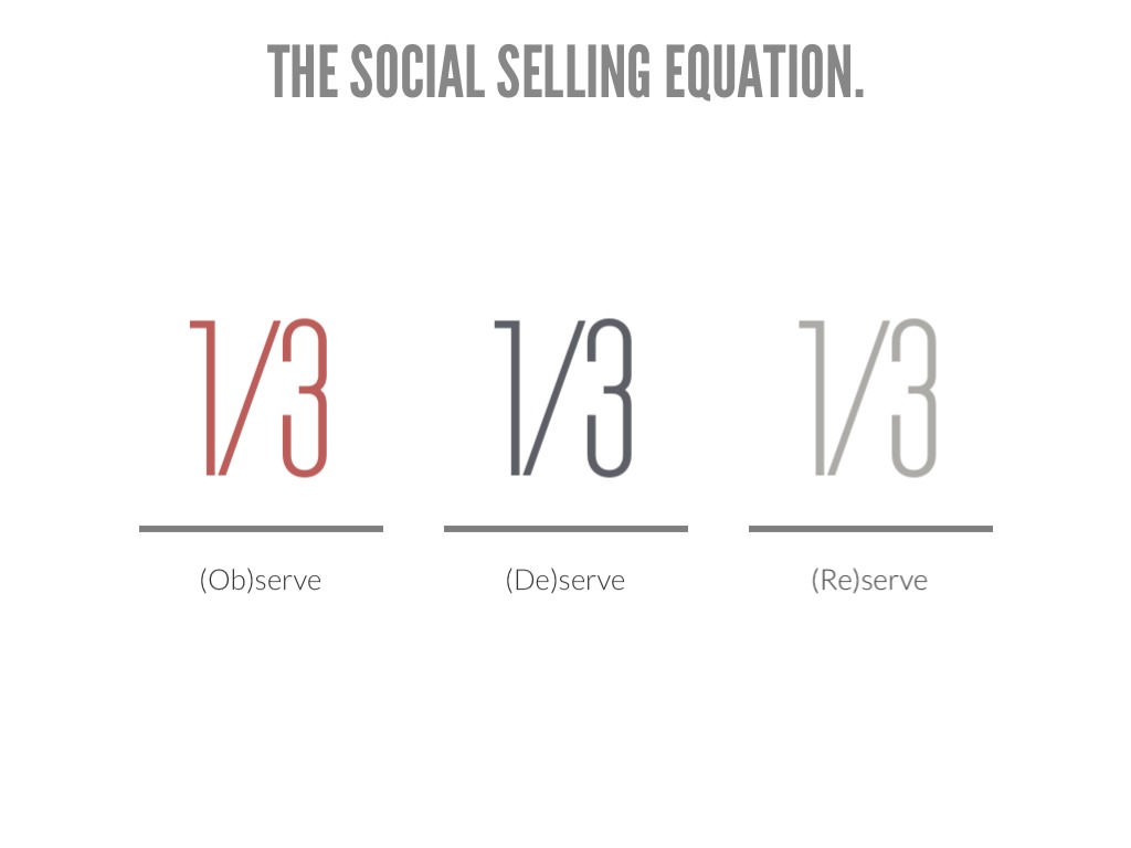 The Social Selling Equation - 30% (Ob)Serving. 30% (De)Serving. And 30% (Re)Serving. Find out how to succeed with social selling in this walkthrough.