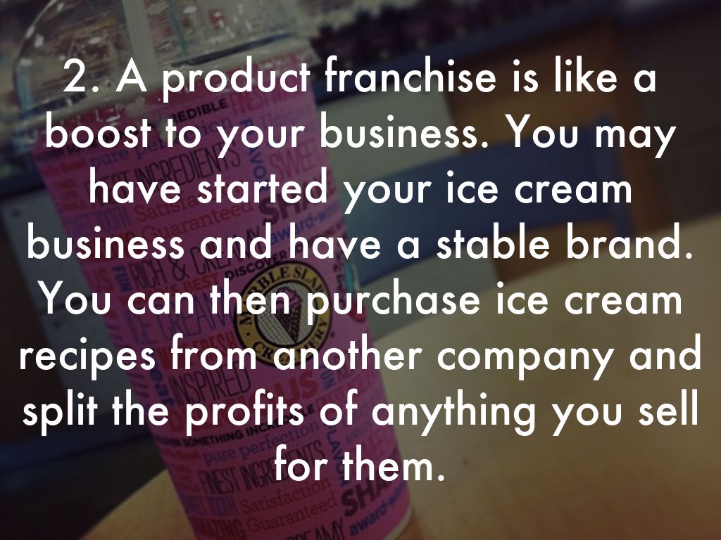 1. When you own a business franchise, it is like starting your own business but with a little more help. You already have an established brand, product, and customer base. You can enjoy starting an ice cream business without some of the hassle that comes with starting your own business from scratch.