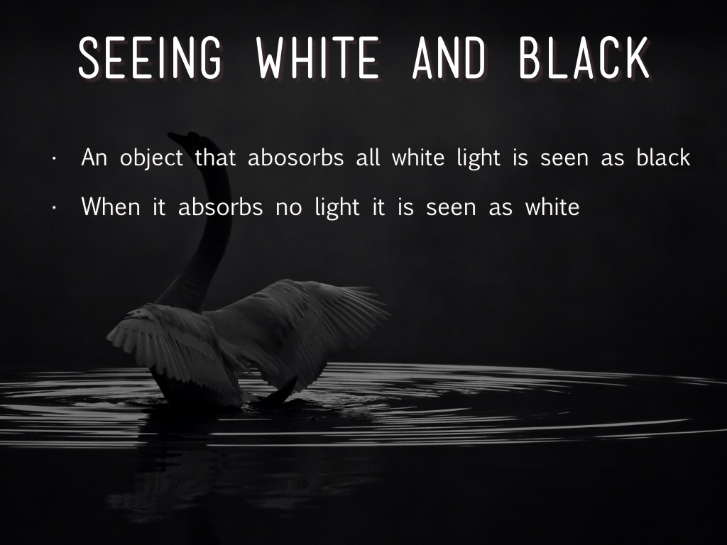• An object that abosorbs all white light is seen as black