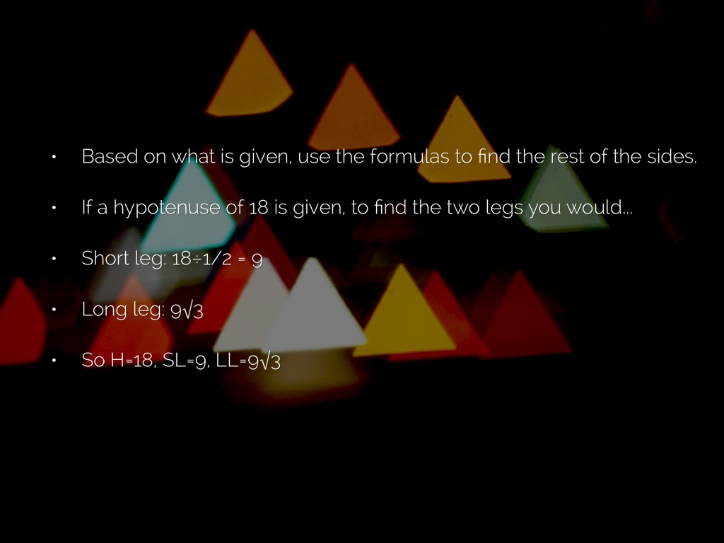 If a hypotenuse of 18 is given, to find the two legs you would...