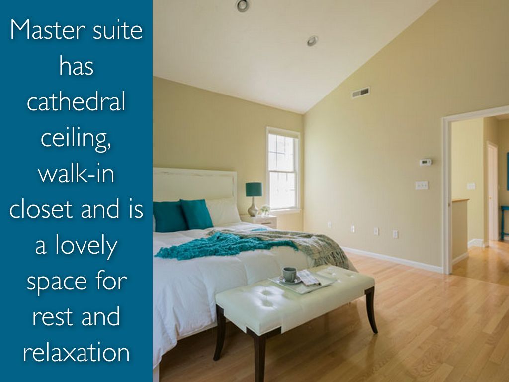 Master suite has cathedral ceiling, walk-in closet and is a lovely space for rest and relaxation