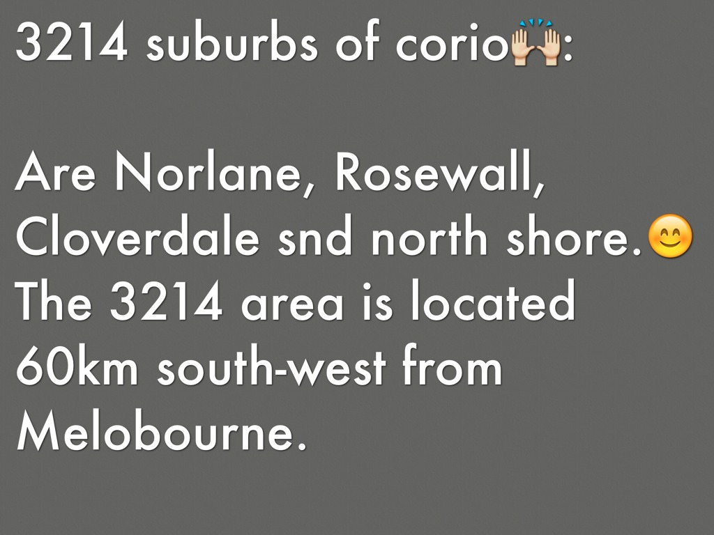 Are Norlane, Rosewall, Cloverdale snd north shore.๐ The 3214 area is located 60km south-west from Melobourne.