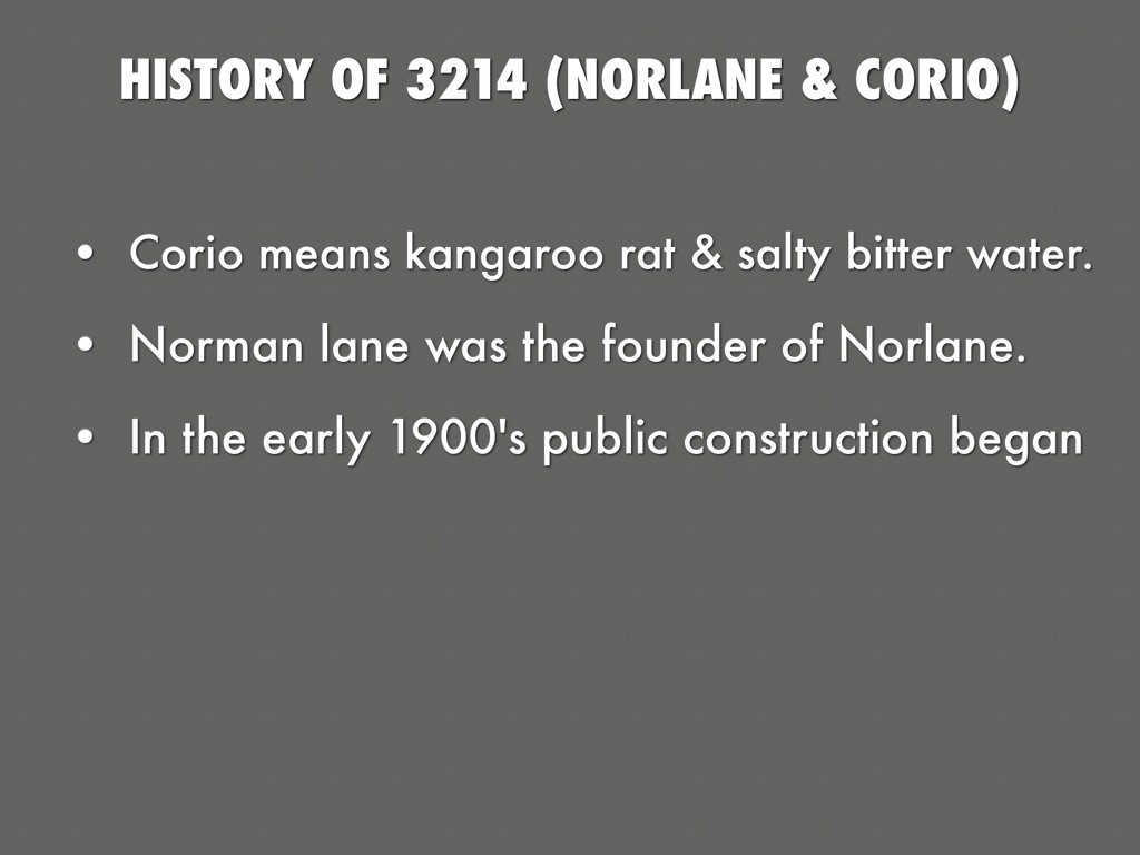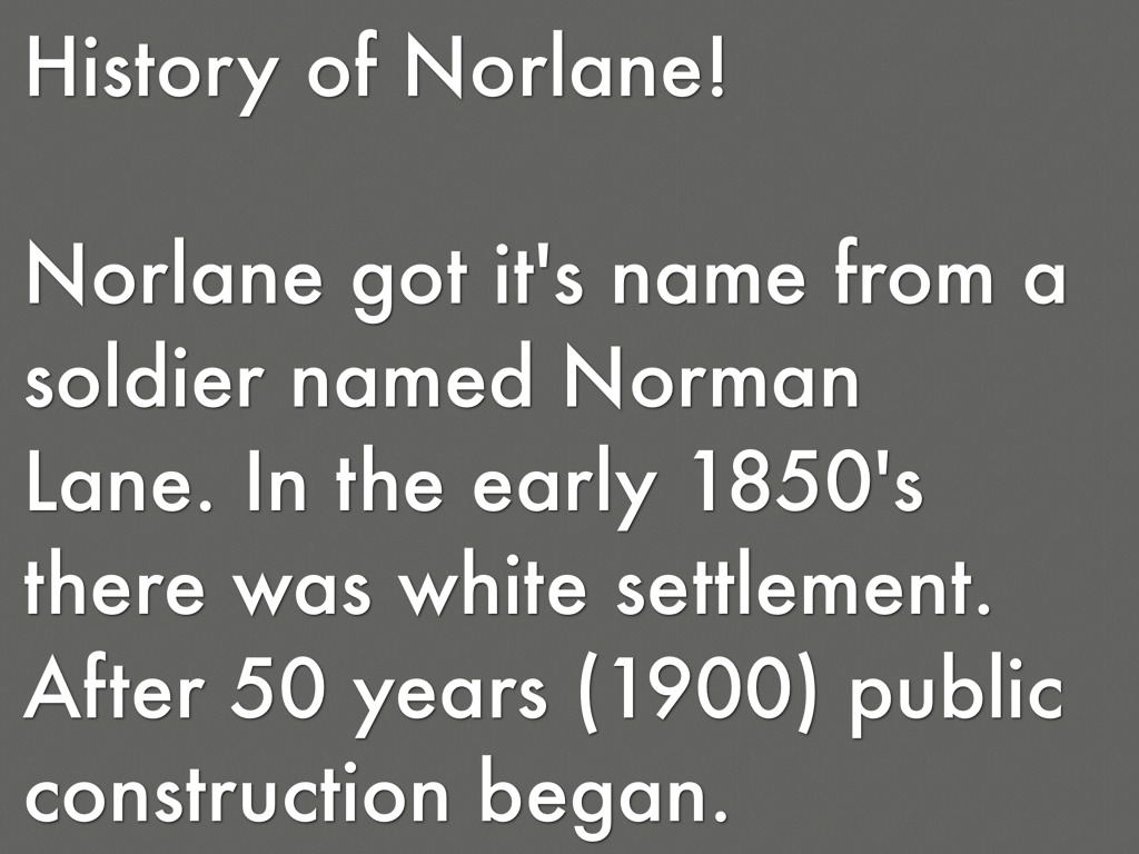 Lane. In the early 1850's there was white settlement. After 50 years (1900) public construction began.