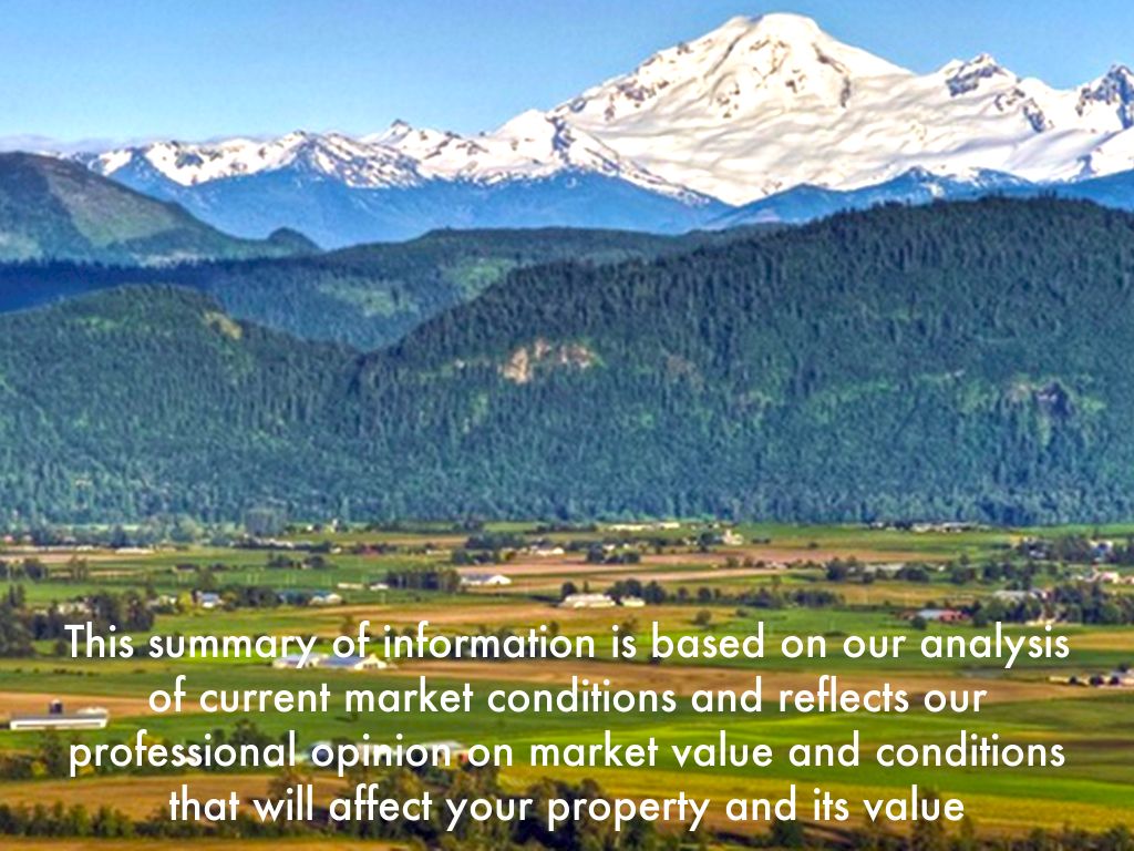 This summary of information is based on our analysis of current market conditions and reflects our professional opinion on market value and conditions that will affect your property and its value