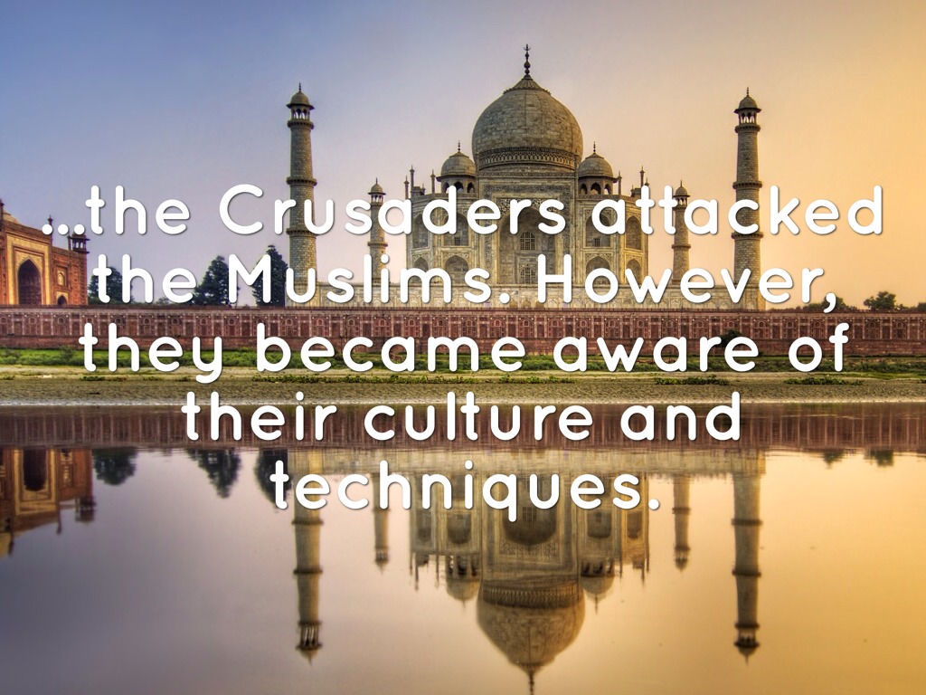 ...the Crusaders attacked the Muslims. However, they became aware of their culture and techniques.