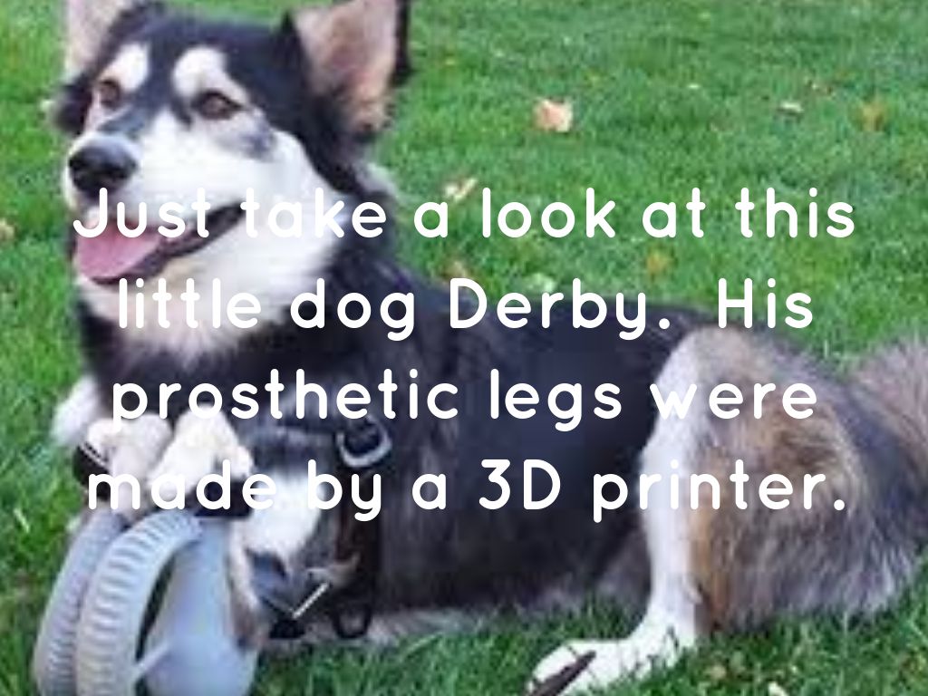 Just take a look at this little dog Derby. His prosthetic legs were made by a 3D printer.
