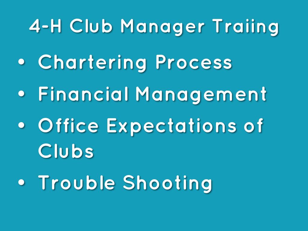 https://cass.agrilife.org/club-manager-resources/Must have forms turned in to office monthly (by last day would be ideal)- we need them for our reports