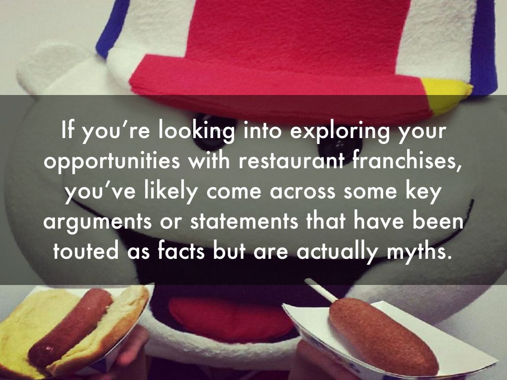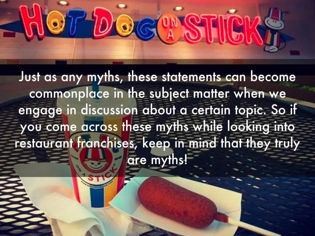 Just as any myths, these statements can become commonplace in the subject matter when we engage in discussion about a certain topic. So if you come across these myths while looking into restaurant franchises, keep in mind that they truly are myths!