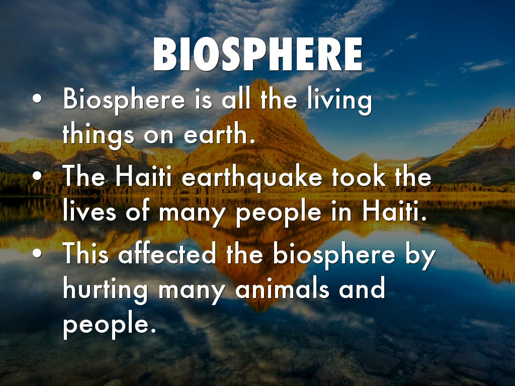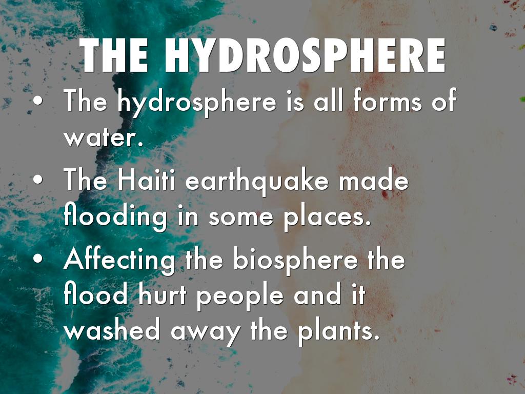 • Affecting the biosphere the flood hurt people and it washed away the plants.