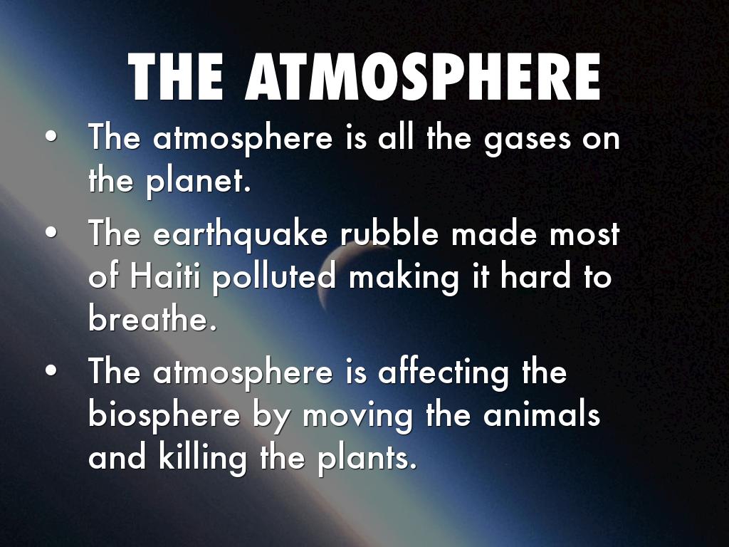 The atmosphere is affecting the biosphere by moving the animals and killing the plants.