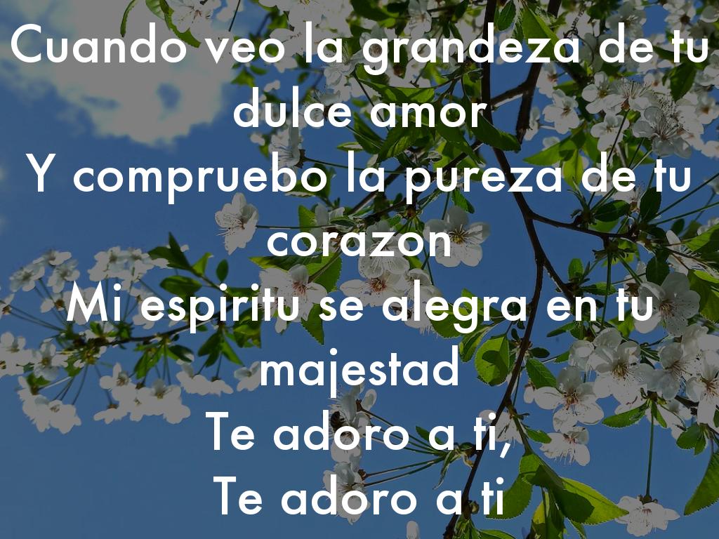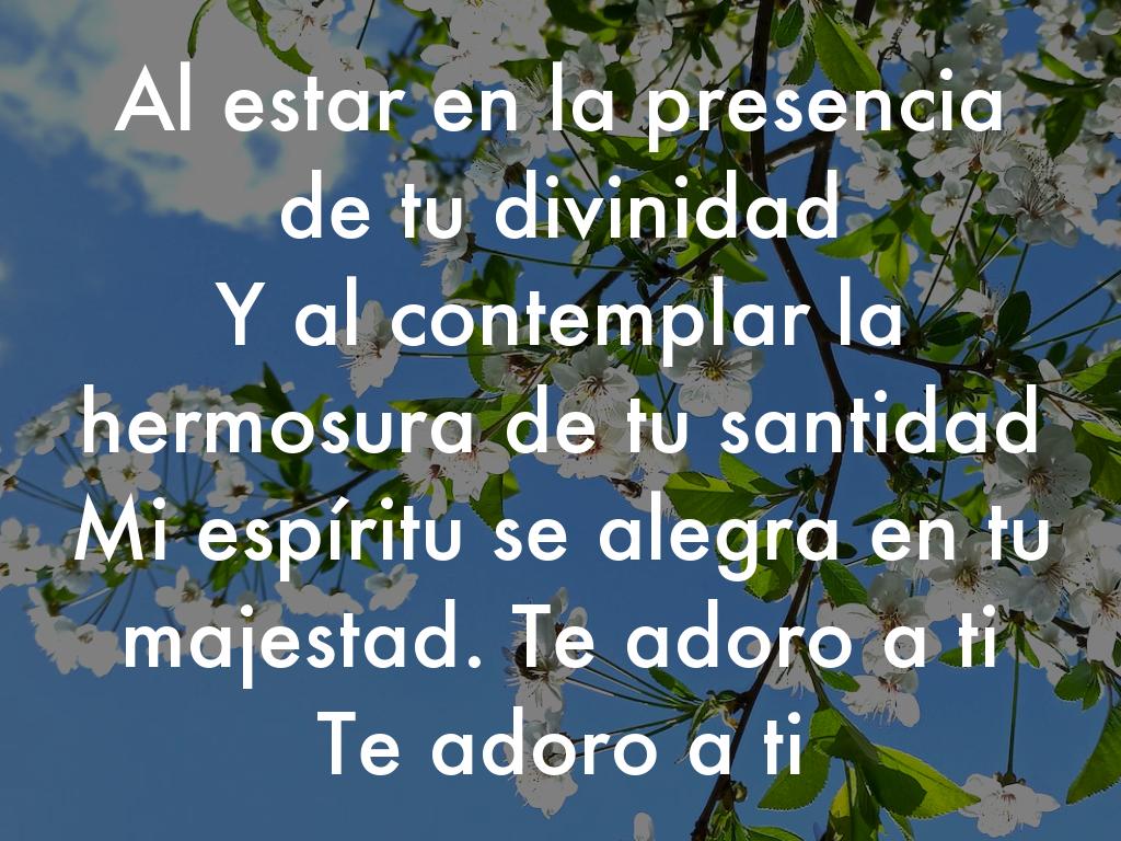 Y al estar aqui, delante de ti te adorare Postrado ante ti, mi corazón te adora oh dios Y siempre quiero estar para adorar y contemplar tu santidad. Te adoro a ti Te adoro a ti