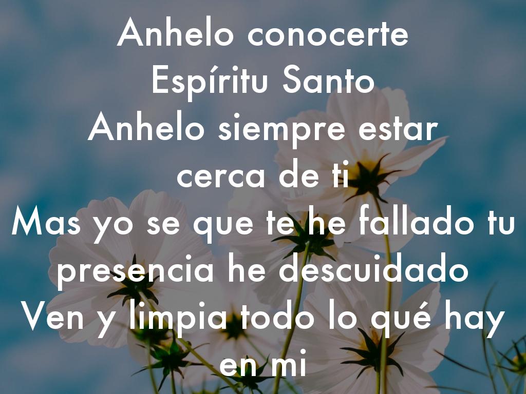 Anhelo conocerte Espíritu Santo Anhelo siempre estar cerca de ti Mas yo se que te he fallado tu presencia he descuidado Ven y limpia todo lo qué hay en mi