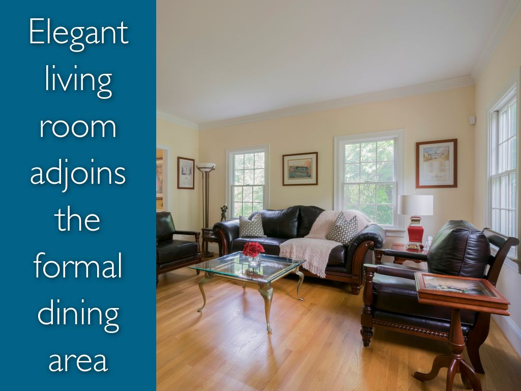 Elegant living room adjoins the formal dining area