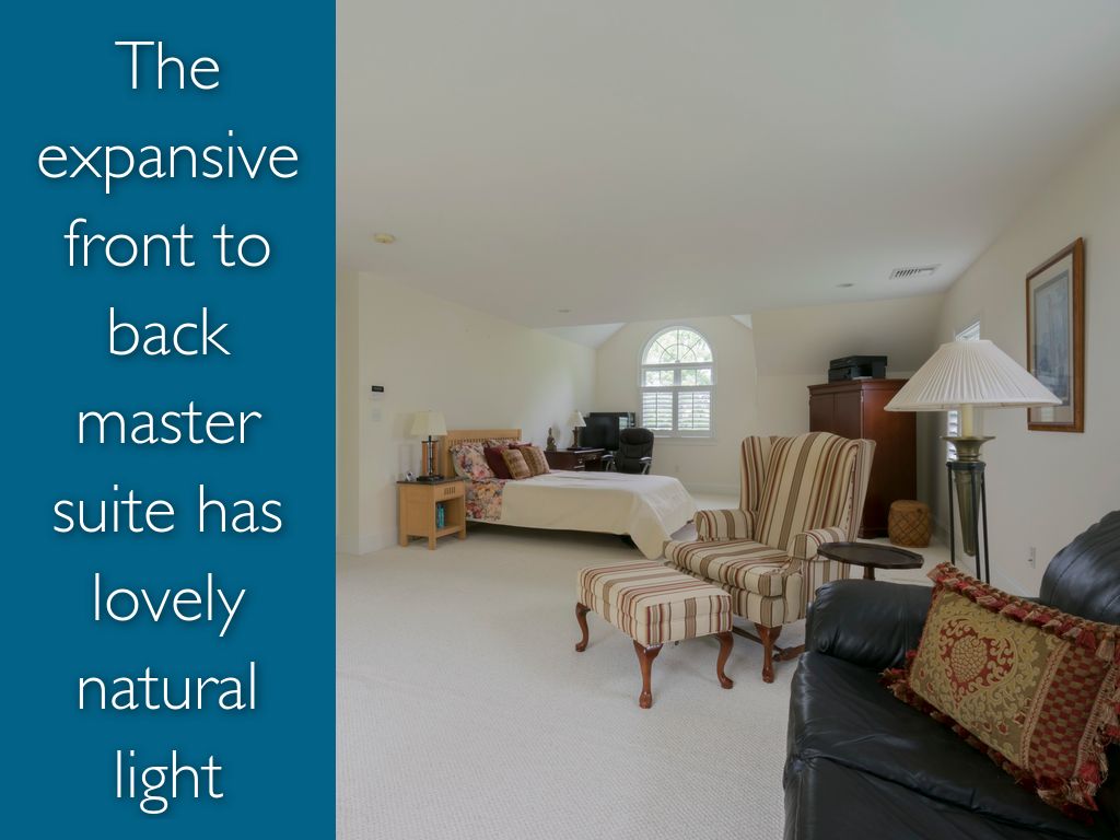 The expansive front to back master suite has lovely natural light