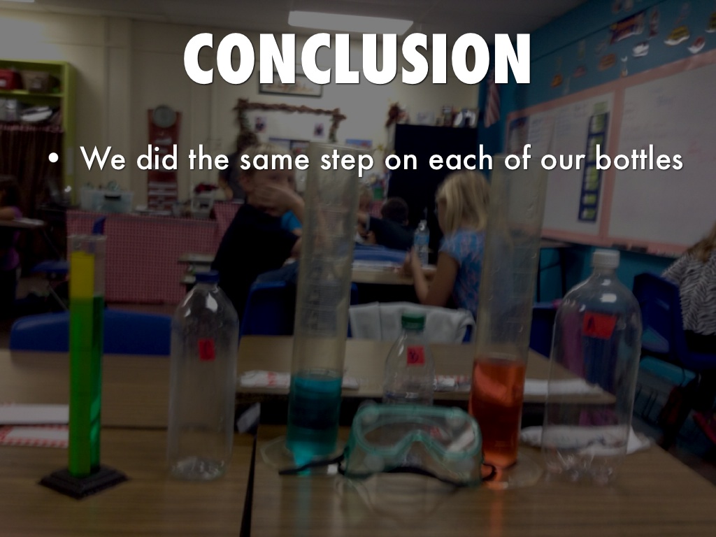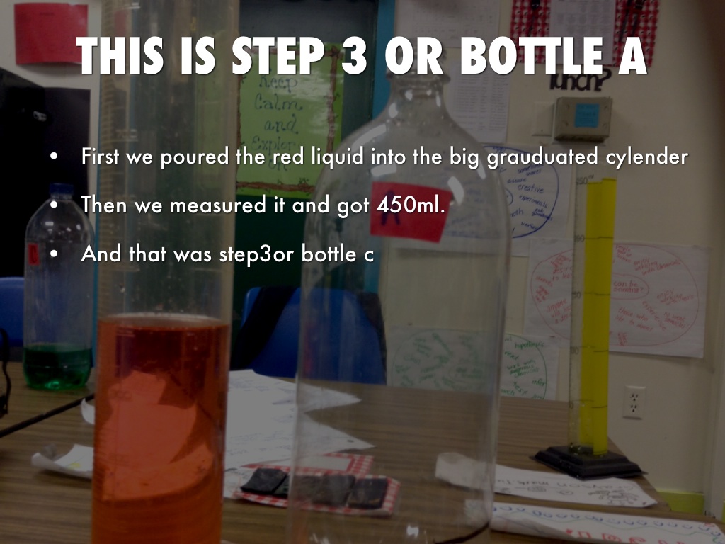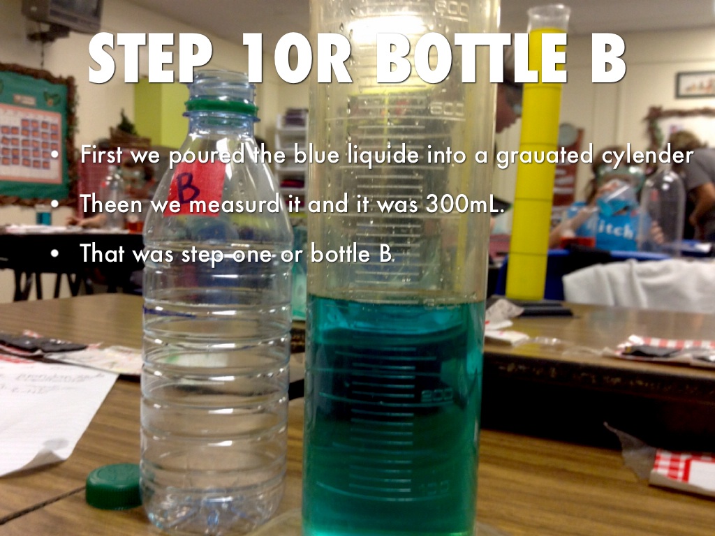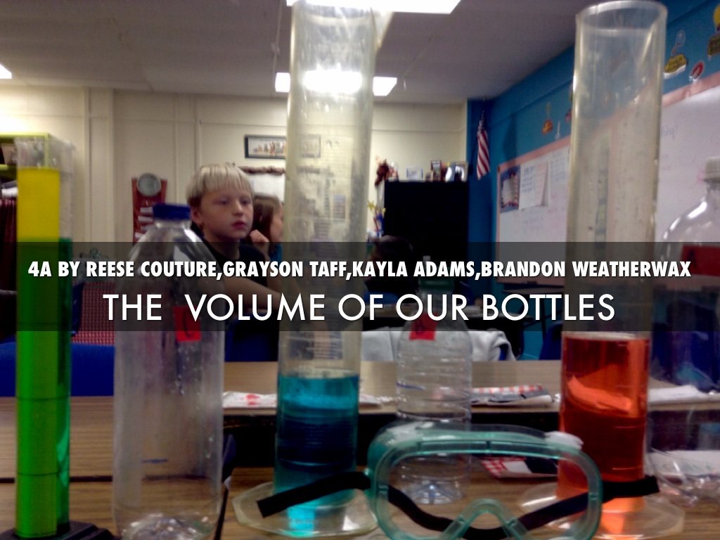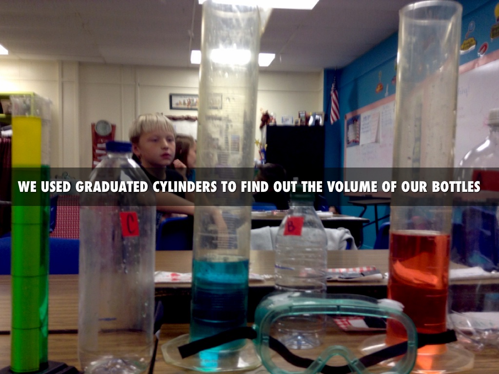 WE USED GRADUATED CYLINDERS TO FIND OUT THE VOLUME OF OUR BOTTLES