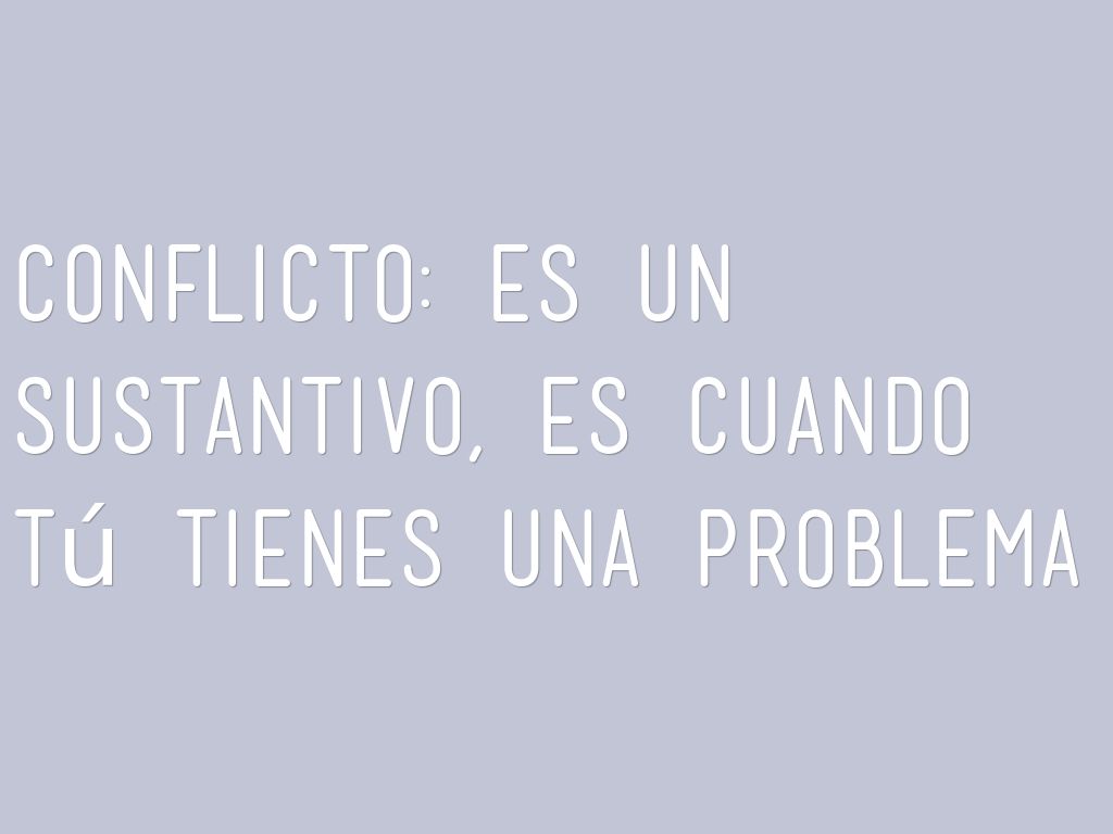 Conflicto: es un sustantivo, es cuando tú tienes una problema