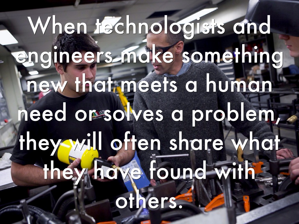 When technologists and engineers make something new that meets a human need or solves a problem, they will often share what they have found with others.