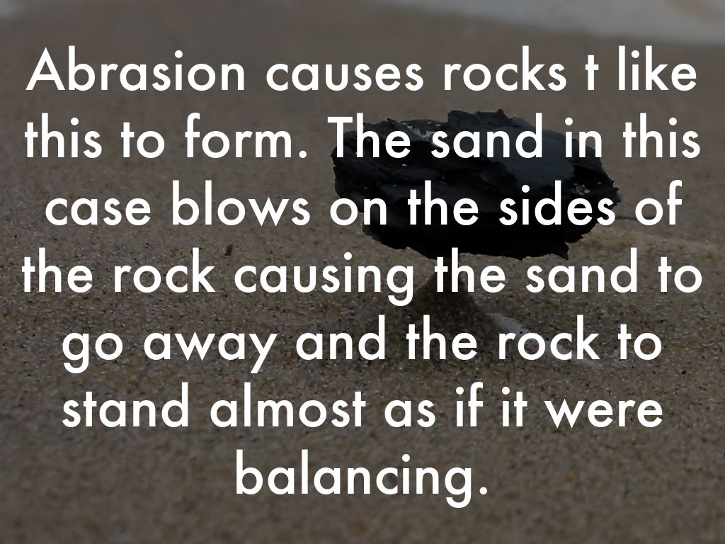 Abrasion causes rocks t like this to form. The sand in this case blows on the sides of the rock causing the sand to go away and the rock to stand almost as if it were balancing.