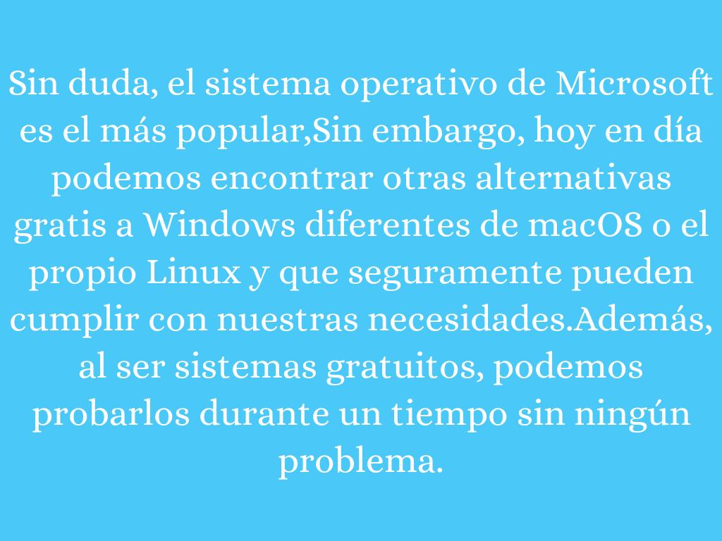 Sin duda, el sistema operativo de Microsoft es el más popular,Sin embargo, hoy en día podemos encontrar otras alternativas gratis a Windows diferentes de macOS o el propio Linux y que seguramente pueden cumplir con nuestras necesidades.Además, al ser sistemas gratuitos, podemos probarlos durante un tiempo sin ningún problema.