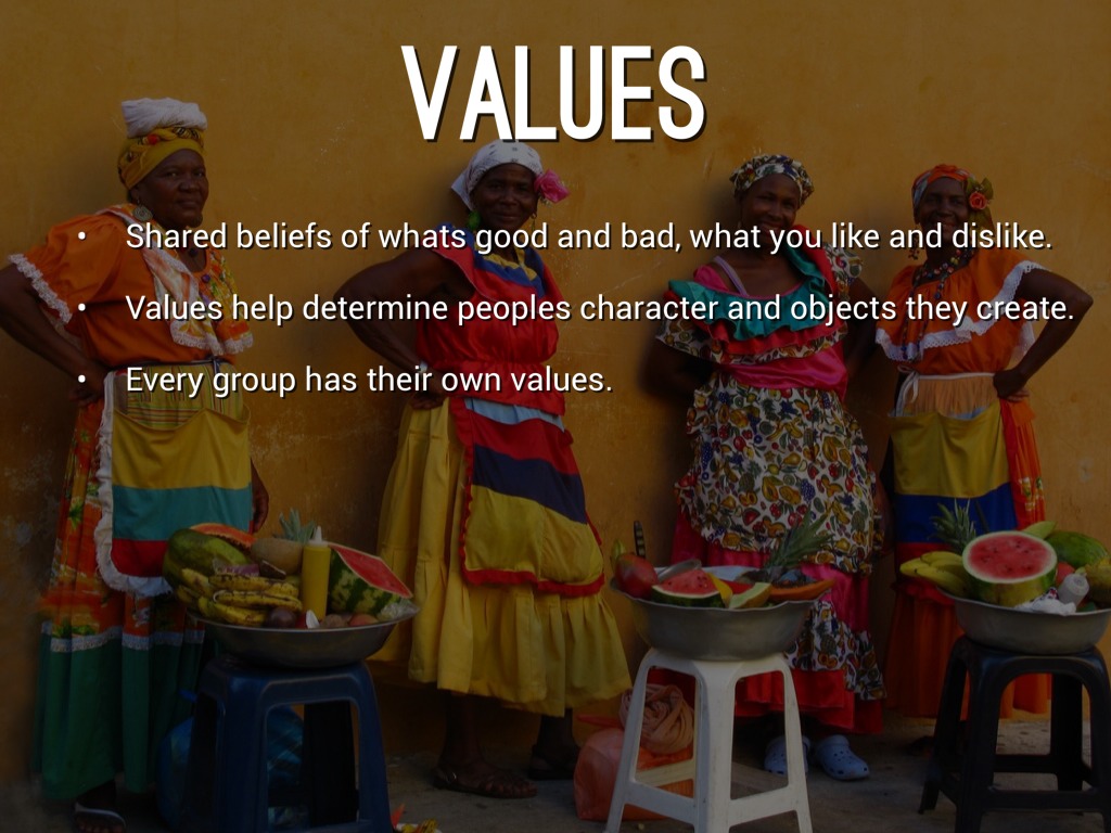 • Shared beliefs of whats good and bad, what you like and dislike.