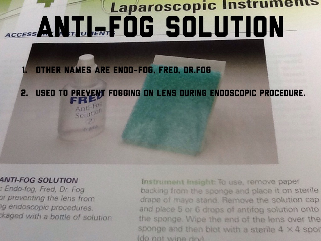 Used to prevent fogging on lens during endoscopic procedure.