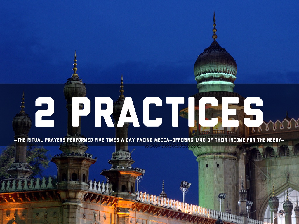 ~THE RITUAL PRAYERS PERFORMED FIVE TIMES A DAY FACING MECCA~OFFERING 1/40 OF THEIR INCOME FOR THE NEEDY~