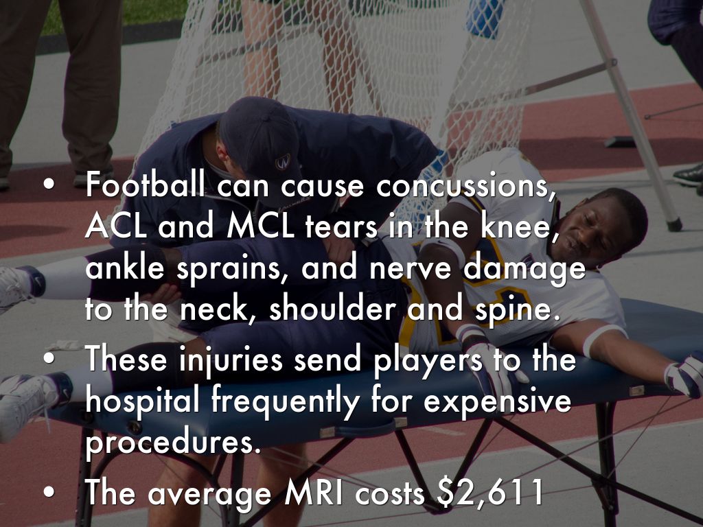 Football can cause concussions, ACL and MCL tears in the knee, ankle sprains, and nerve damage to the neck, shoulder and spine.