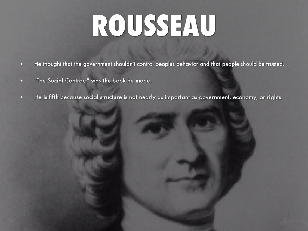 He is fifth because social structure is not nearly as important as government, economy, or rights.