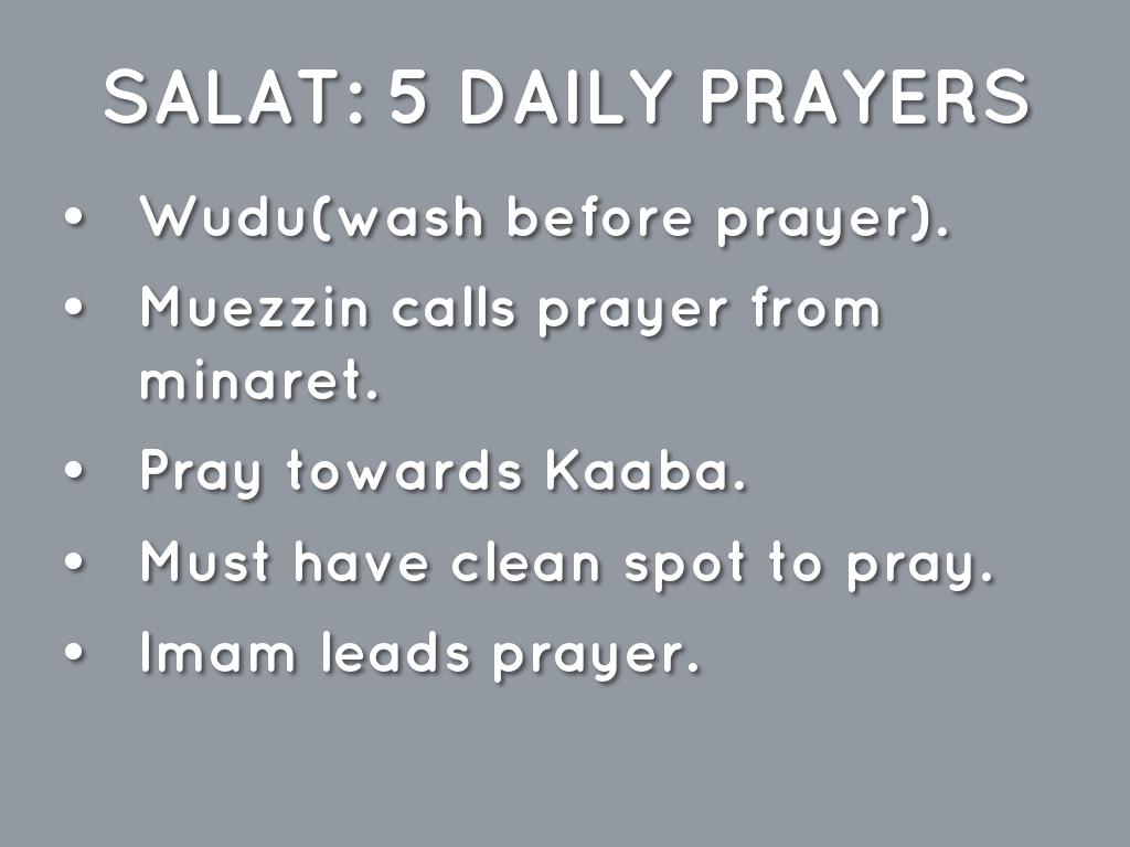 Circle Kaaba 7 times, pray on Mt. Arafat, run between 2 hills, visit Zamzam spring,