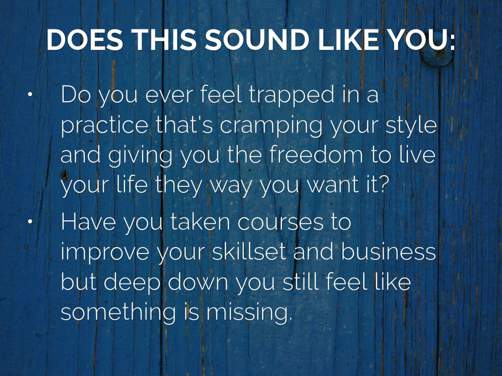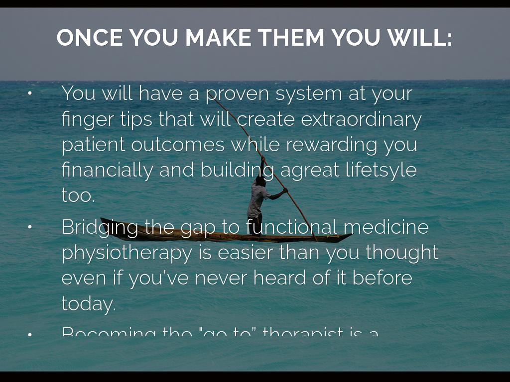 You will have a proven system at your finger tips that will create extraordinary patient outcomes while rewarding you financially and building agreat lifetsyle too.