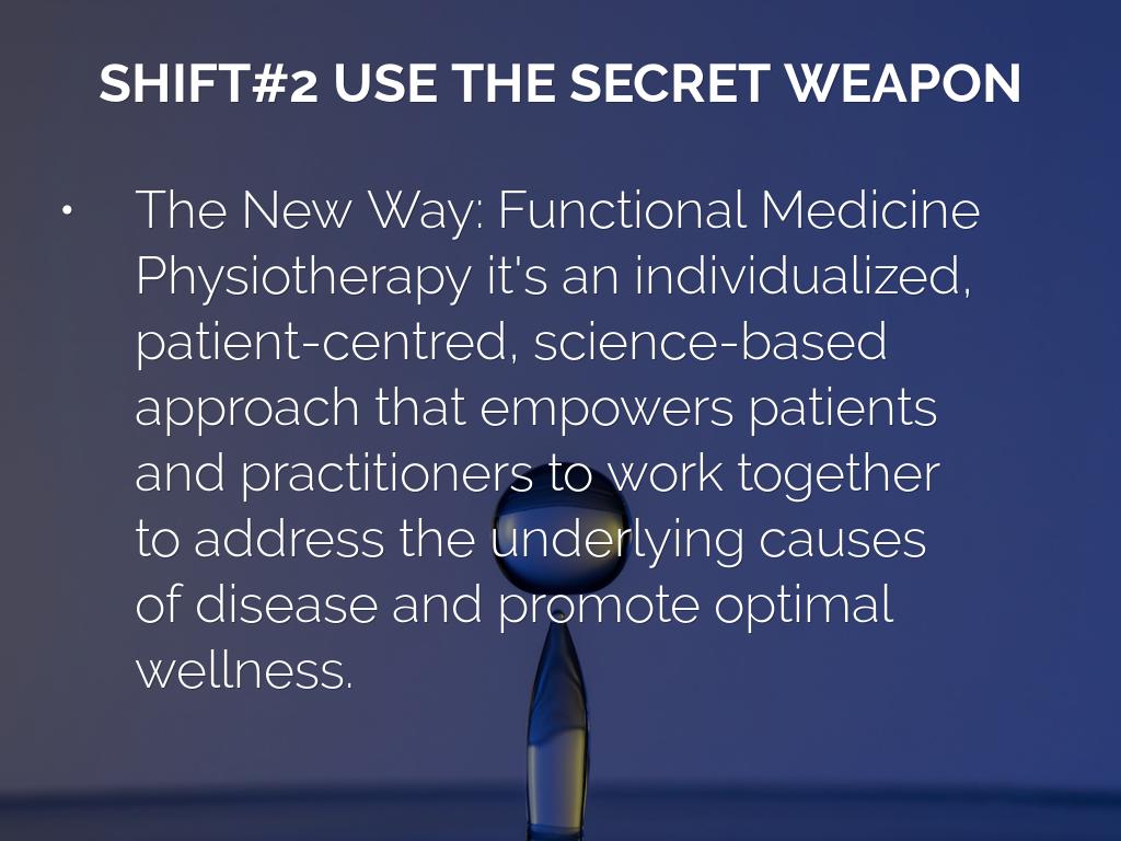 The New Way: Functional Medicine Physiotherapy it's an individualized, patient-centred, science-based approach that empowers patients and practitioners to work together to address the underlying causes of disease and promote optimal wellness.
