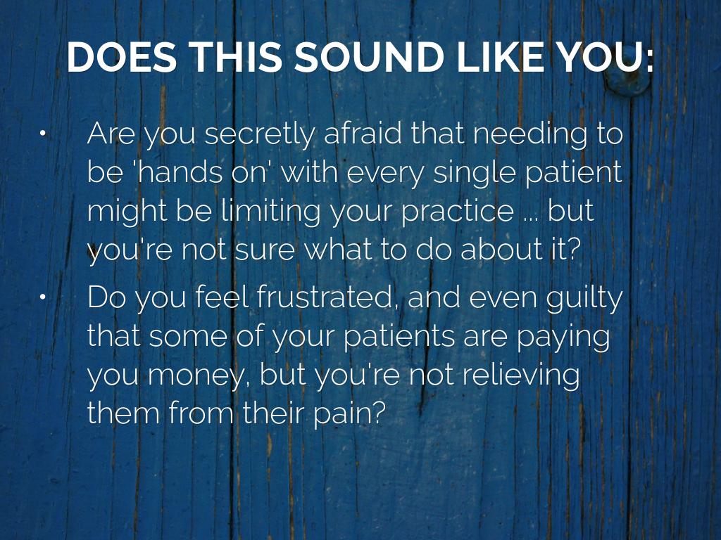 Are you secretly afraid that needing to be 'hands on' with every single patient might be limiting your practice ... but you're not sure what to do about it?