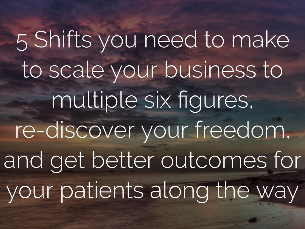 5 Shifts you need to make to scale your business to multiple six figures, re-discover your freedom, and get better outcomes for your patients along the way
