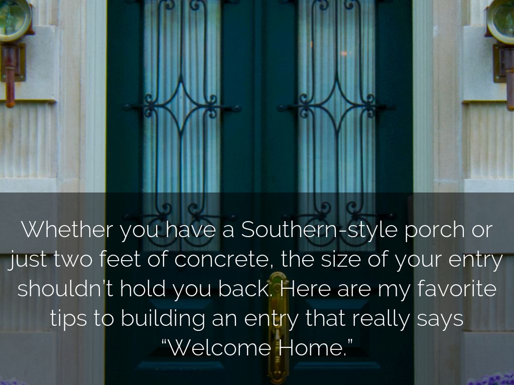 Whether you have a Southern-style porch or just two feet of concrete, the size of your entry shouldn’t hold you back. Here are my favorite tips to building an entry that really says “Welcome Home.”