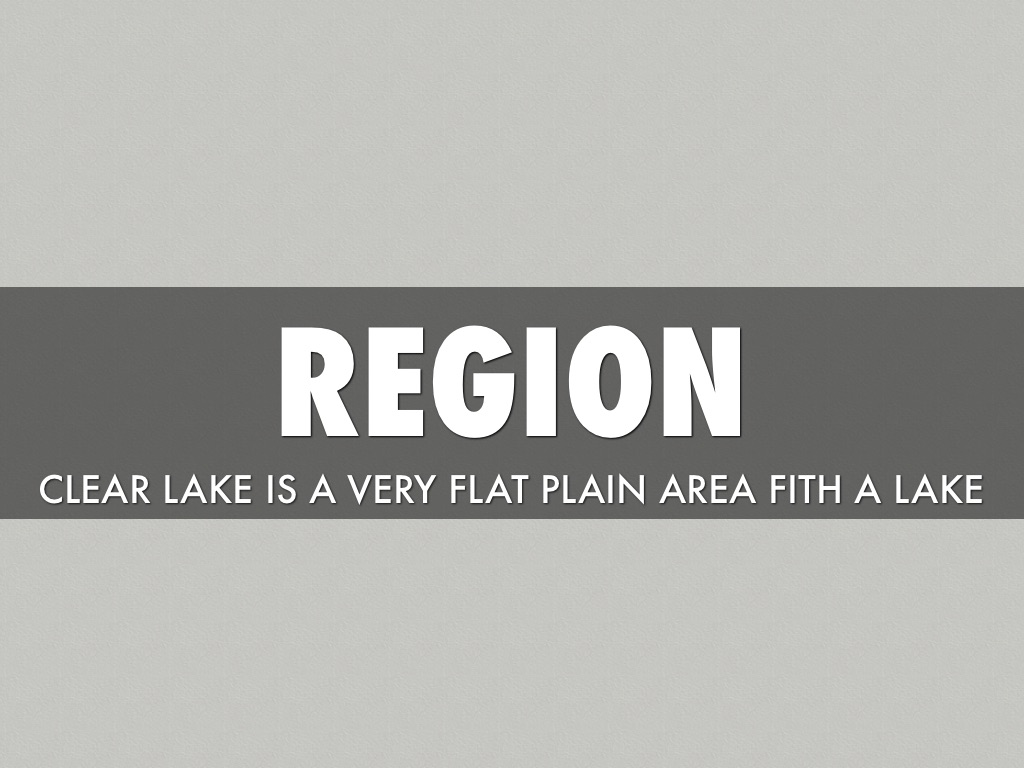 CLEAR LAKE IS A VERY FLAT PLAIN AREA FITH A LAKE