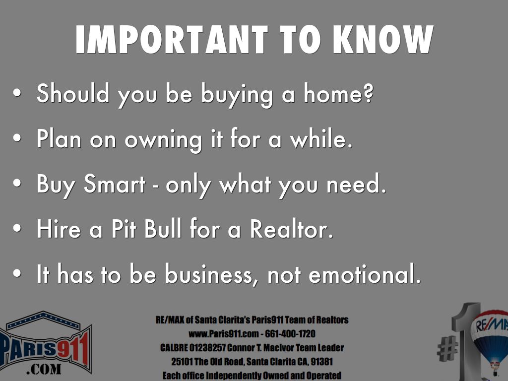 When looking for real estate, whether online or in person, have you really explored all the reasons to do so? Are you doing it out of obligation, because you think it is necessary? Let the REMAX of Valencia CA Paris911 Team explore the possibilities with you on this Heavily Written about Topic.