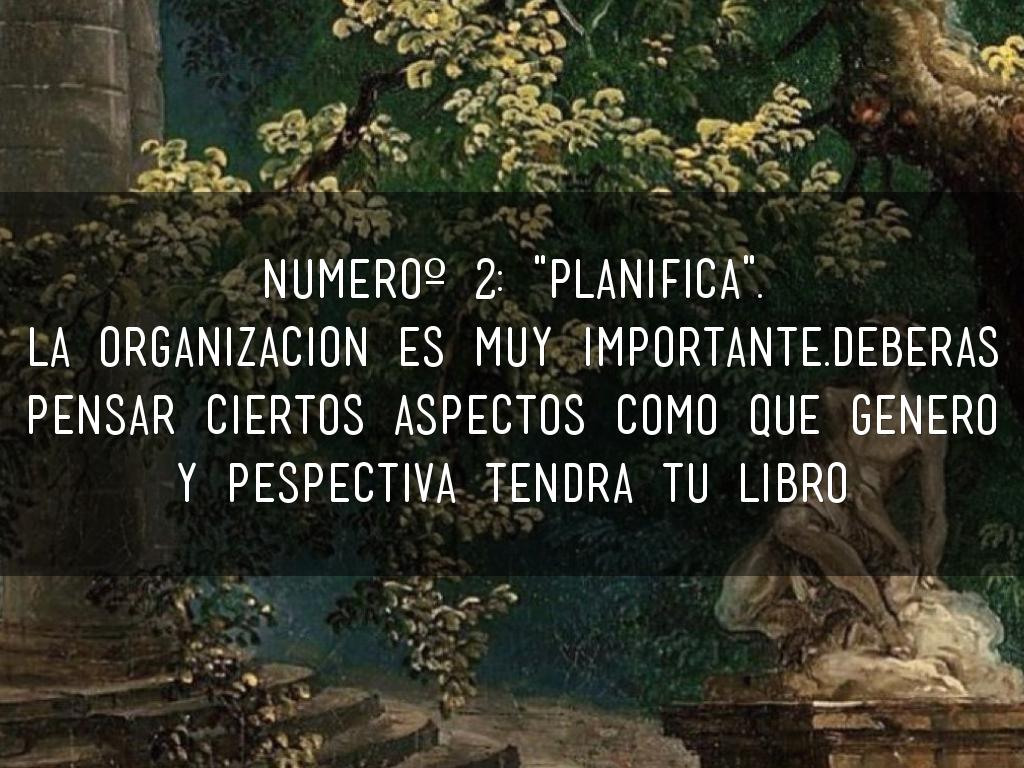 La organizacion es muy importante.Deberas pensar ciertos aspectos como que genero y pespectiva tendra tu libro