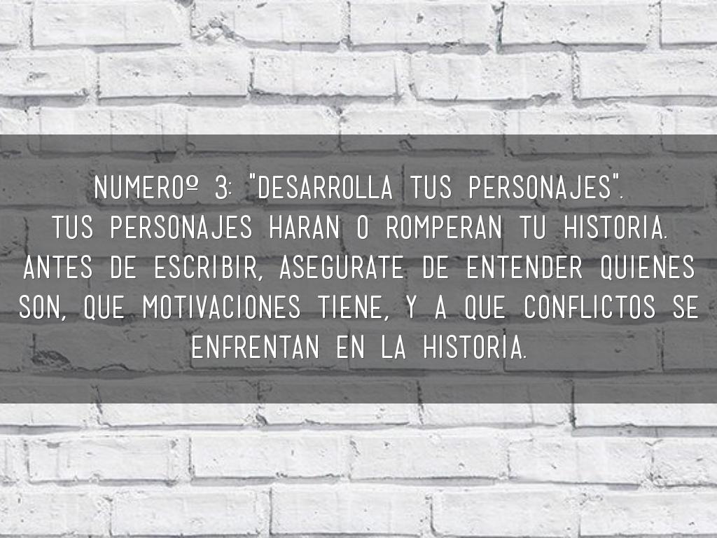 tus personajes haran o romperan tu historia. Antes de escribir, asegurate de entender quienes son, que motivaciones tiene, y a que conflictos se enfrentan en la historia.